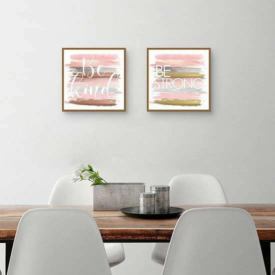 Nikki Chu’s artwork gives a space a fashionable and glam appearance in this Master Piece Be Kind Script 2 & Be Strong Rose Canvas Wall Art 2-piece Set.