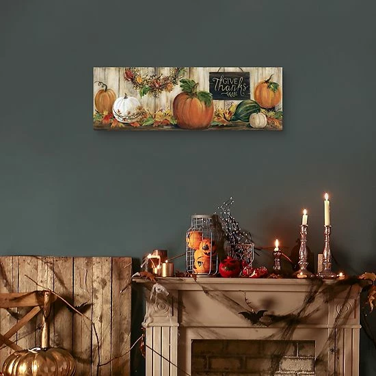 Redefine the look of your space by adding this beautifully designed Master Piece Give Thanks Pumpkins Wall Decor.