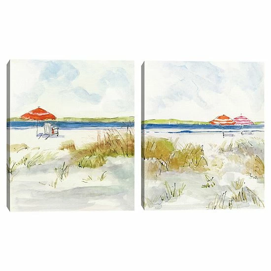 Create a beach-themed bedroom with this Master Piece Sketchy Beach I & II by Sally Swatland Canvas Wall Art 2-piece Set.