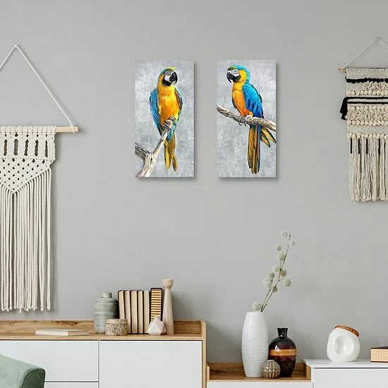 Bring a blank wall to life with the addition of this Master Piece Tropical Parrots I & II Canvas Wall Art by Studio Arts.